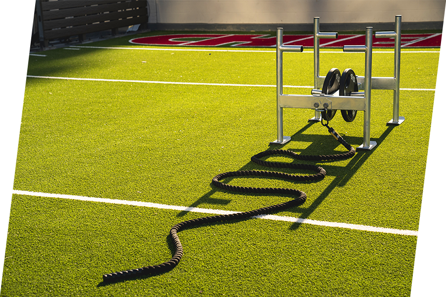 It’s not as loud as GEHA Field at Arrowhead, but it’s got the same winning energy. Our 40-yard, turf field is built for functional and group training. Ample space for sled pushes, athletic drills and functional movement.